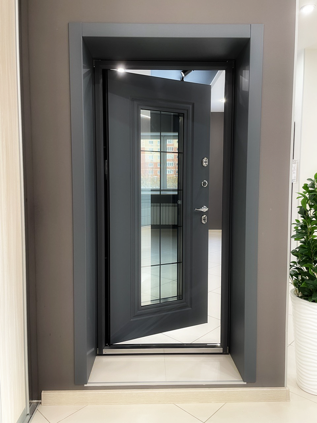 Комплексный подход к улучшению структуры позволил создать дверь с остеклением, основанную на модели Snegir ARCTIC. Вариант Snegir ARCTIC-C оборудован двумя стеклопакетами: тонированным внутренним и прозрачным внешним, а также декоративной решеткой, дополненной защитной накладкой. Чтобы повысить прочность дверного полотна, оно усилено ребрами жесткости по периметру стеклопакета.